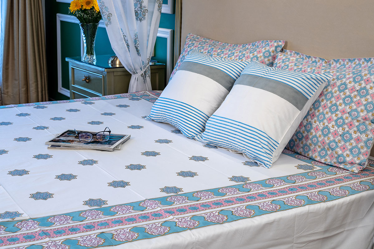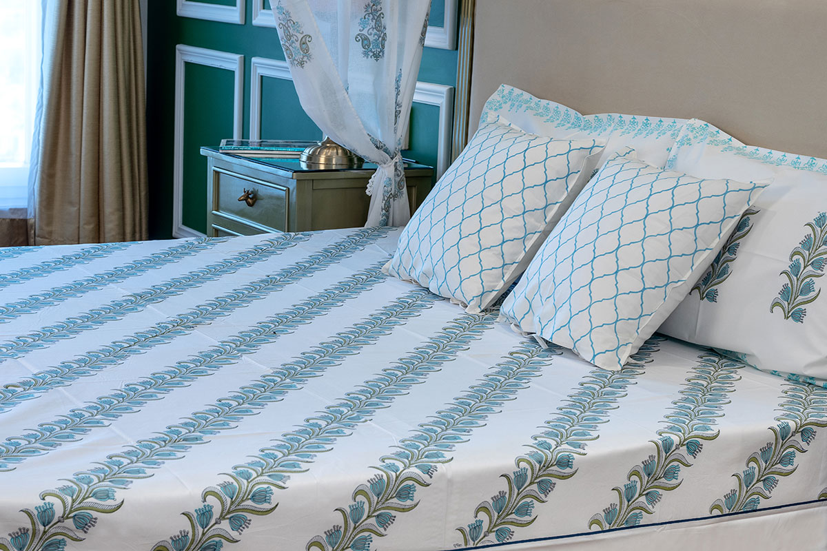 Our bedsheets are block printed on 400 Tc cotton fabric giving them a super soft and luxury feel.Our design team creates designs which are then carved onto wooden blocks to create unique and artisanal pieces